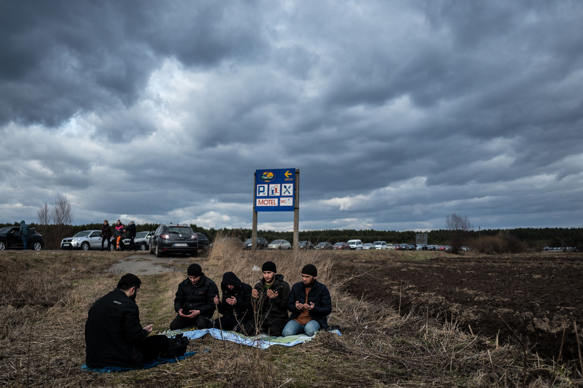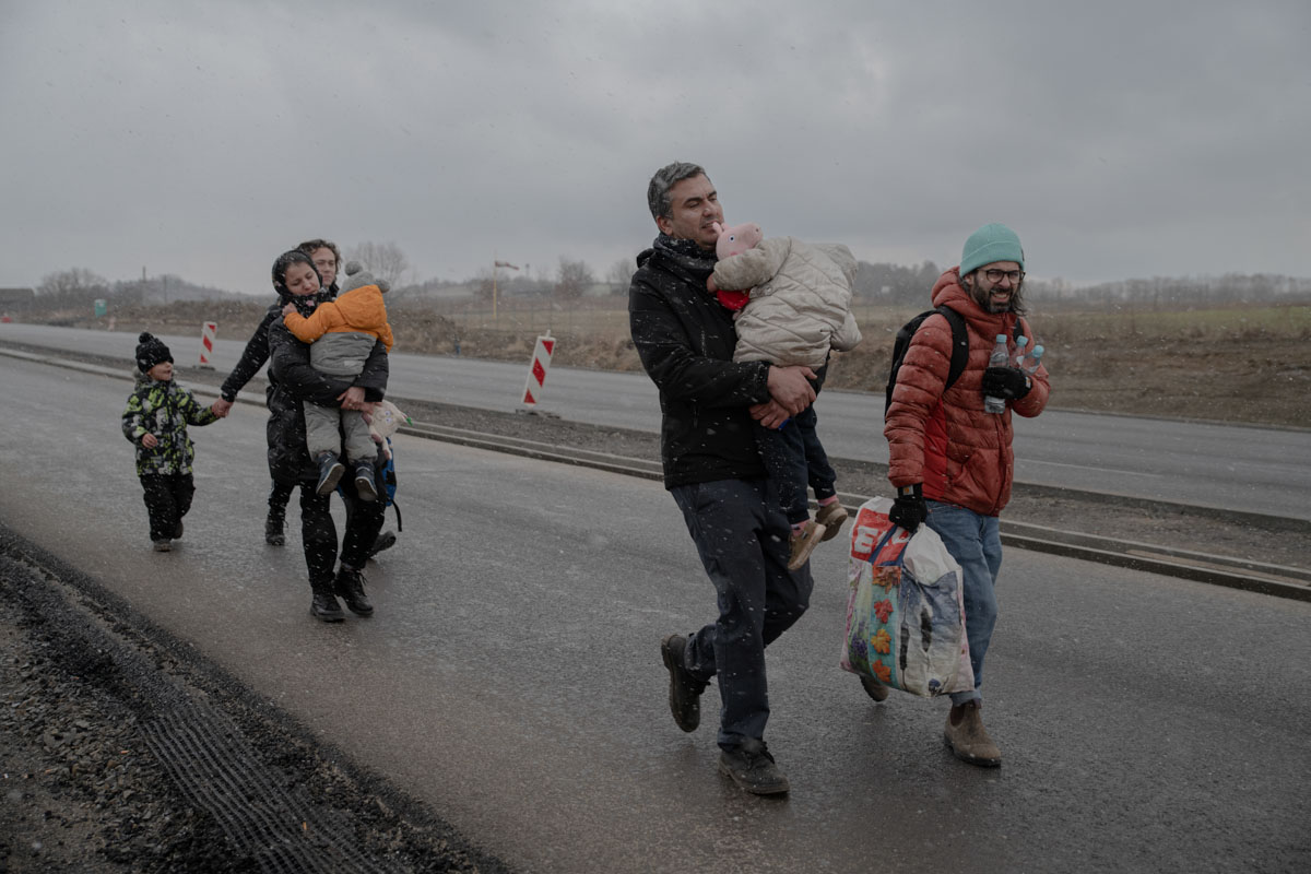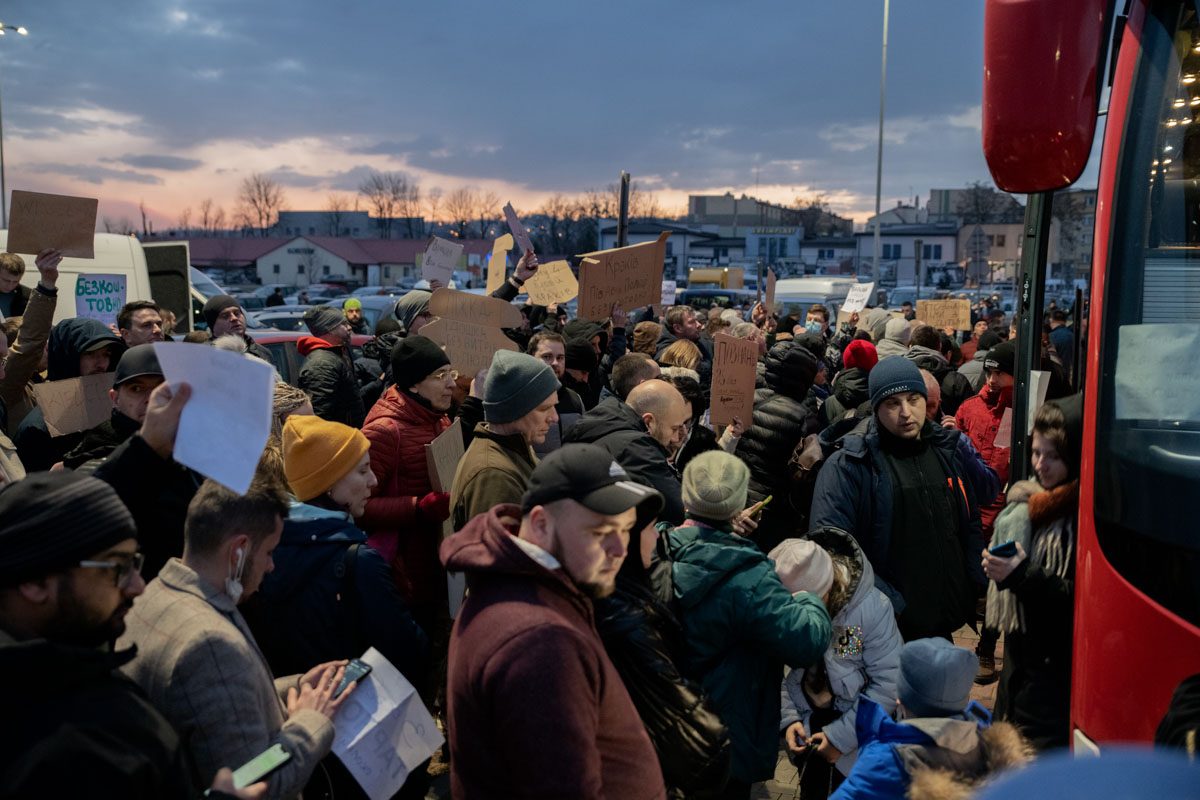 Her ses en af de kaotiske scener fra udkanten af grænsebyen Przmyśl, hvor flygtningen bliver sat af med busser efter de har krydset grænsen til fods. En stor mængde polske frivillige står klar til at tage imod dem og tilbyde gratis kørsel til andre dele af landet.