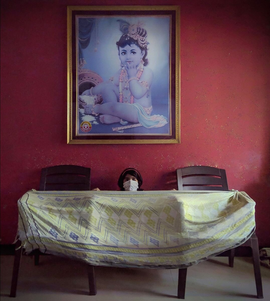 Fotojournaliststuderende Katrine Noer blev frustreret over ikke selv at kunne tage ud og dokumentere folks liv under karantænen. Derfor søgte hun via Instagram efter folk, som ville dokumentere deres eget liv. De fik tilsendt et engangskamera, og deres billeder deler Katrine løbende på Instagram kontoen lockdown___diaries. Billedet her følges af teksten: