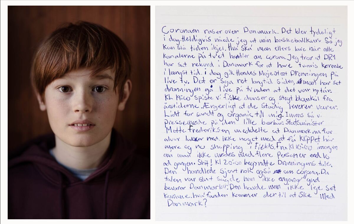 »Kl 20:00 begyndte Dronningens tale. Den handlede sjovt nok også om corona. Da talen var slut sagde hun ikke engang "gud bevarer Danmark". Den havde man ikke lige set komme. hva’ fanden kommer der til at ske med Danmark? « sådan skrev 12 årige Hannibal i sin dagbog fra sit liv i isolation med familien i Dragør.