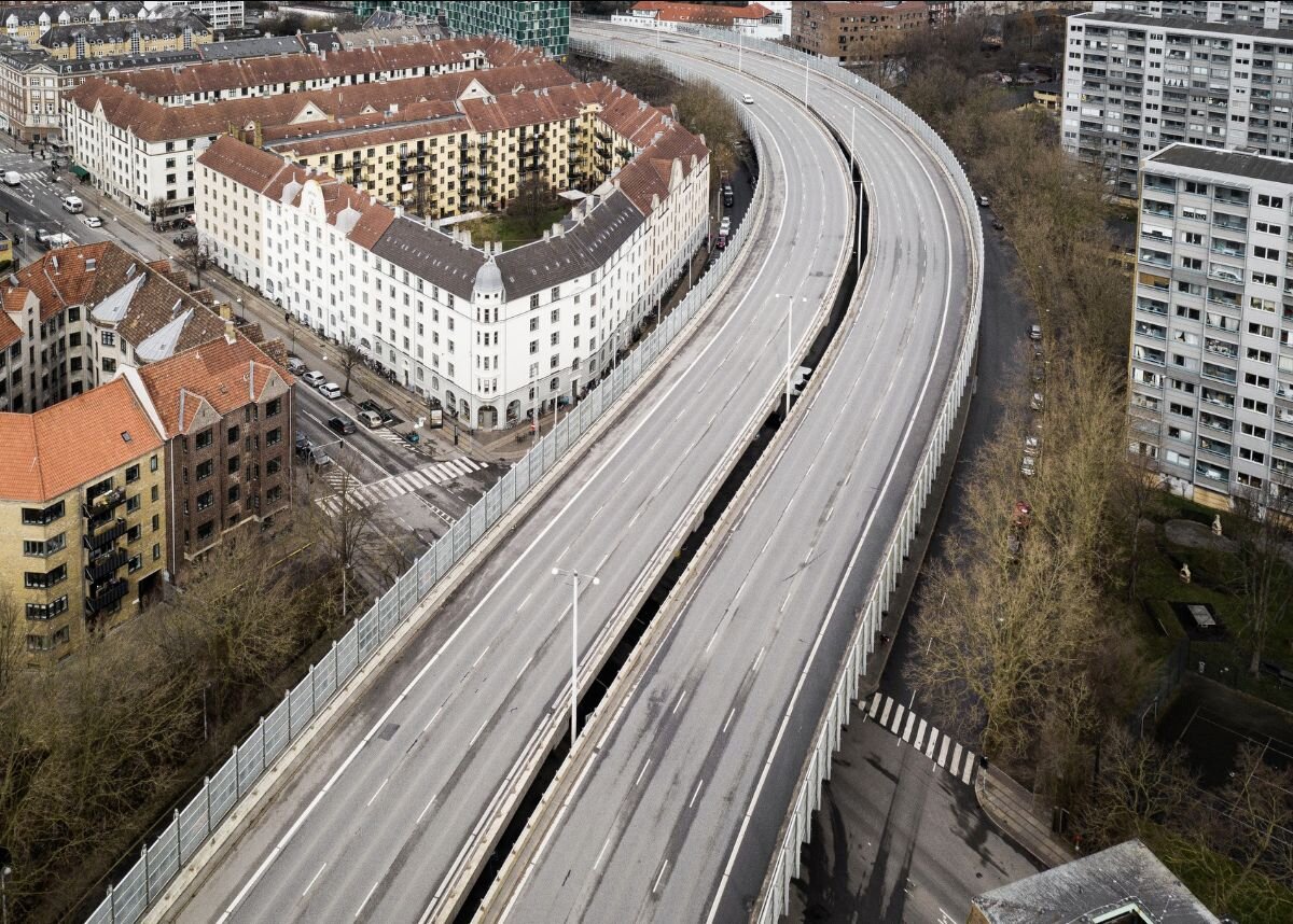 I begyndelsen af krisen var noget af det mest fotograferede naturligt nok billeder af et Danmark, som stort set var gået i stå. Nedenstående billede er fra serien Covid Copenhagen af Lasse Bak Mejlvang og Mads Eneqvist. Billederne har været vist både hos Euroman og DR.